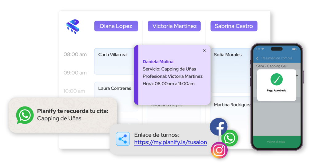 Reduce las cancelaciones con enlace de turnos, recordatorios automatizados y cobro de señas